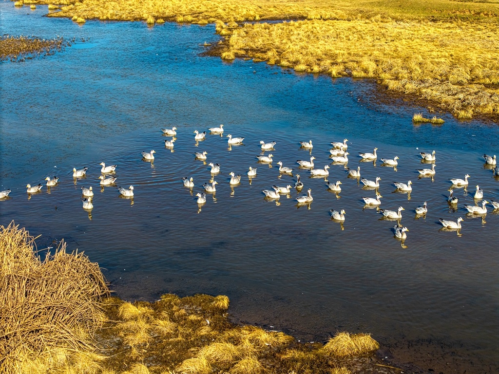 每年冬日,黑颈鹤、灰鹤等上万只珍稀候鸟如约而至。