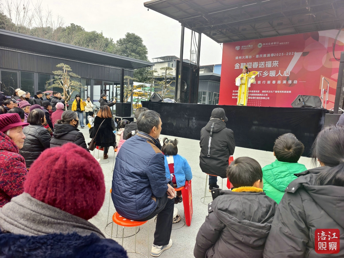 秀水镇钟秀里商业街的广场上,红色舞台早已搭好。虽然才上午九点,已有百余名村民自带小板凳等候。87岁的李大爷坐在最前排:“我小时候跟着爷爷赶过戏班子,后来几十年没见川剧下乡了,这两年又听到了锣鼓声,好!”