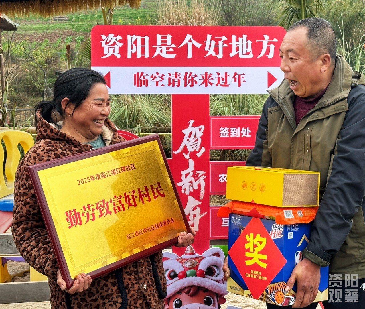 村民获赠资阳市老年诗书画研究会会员书写的春联。朱跃中 摄