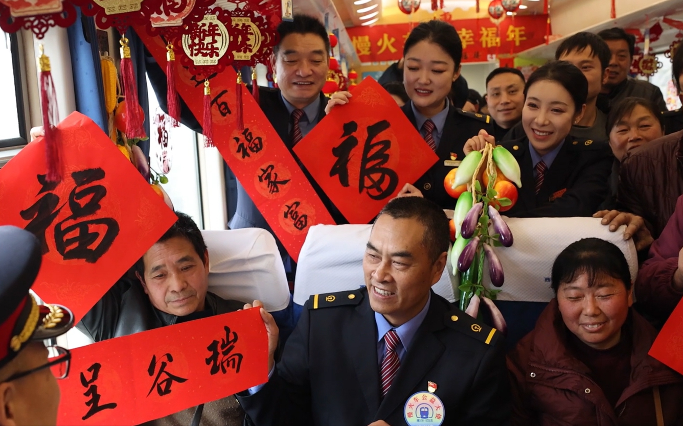 6063/6064次列车全程344公里,平均时速不足40公里,往返一趟需24小时,沿途串联起33个乡镇车站,成为连接山区与外界的“民生线”“致富线”。今年春运期间,向宝林受邀重返岗位,在熟悉的车厢里与乘客共度新春。火车缓缓停靠在了广元朝天南站后,搭车的乘客一上车就认出向宝林。