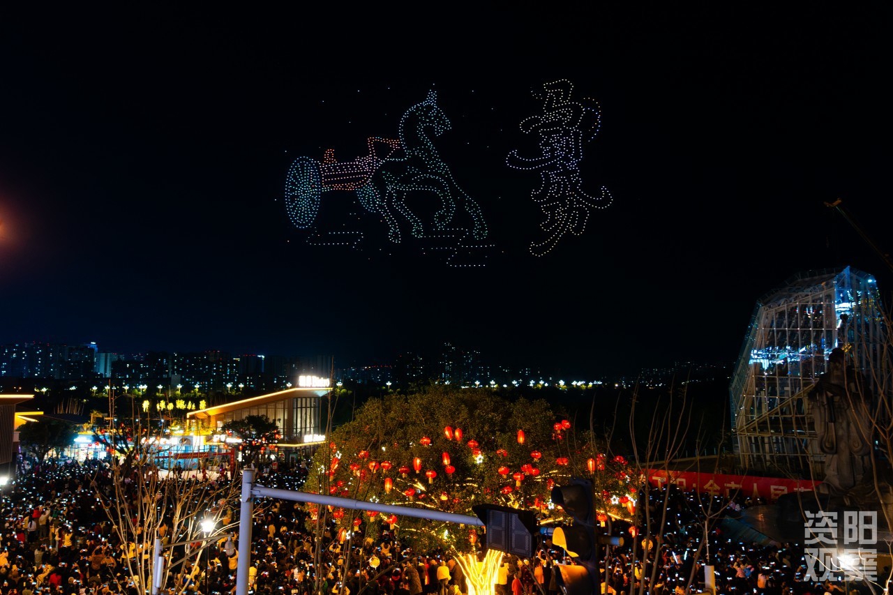 当日,资阳“元宵”民俗巡游与无人机焰火秀如期上演。从下午到夜晚,从地面到苍穹,民俗巡游、2026架无人机与1.5万发礼花弹轮番登场,23.88万人涌向街头、聚在江畔,共享这场科技与民俗交织的文化盛宴。