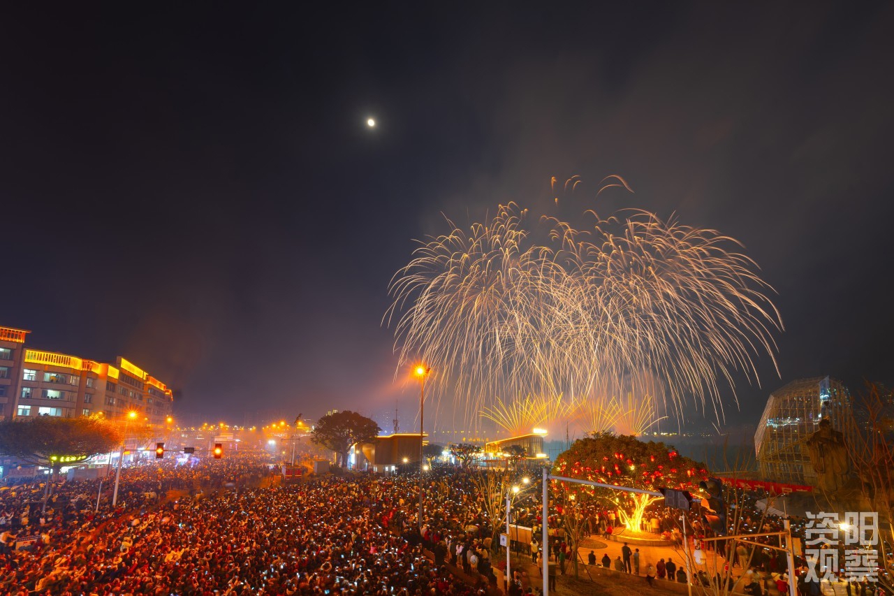 3月1日晚8点,资阳城区苌弘广场,漫天焰火映红了28岁市民李睿的脸。他的脸上透着兴奋,也透着感动。这位特意从成都赶回的青年,在沱江边见证了家乡从未有过的沸腾。