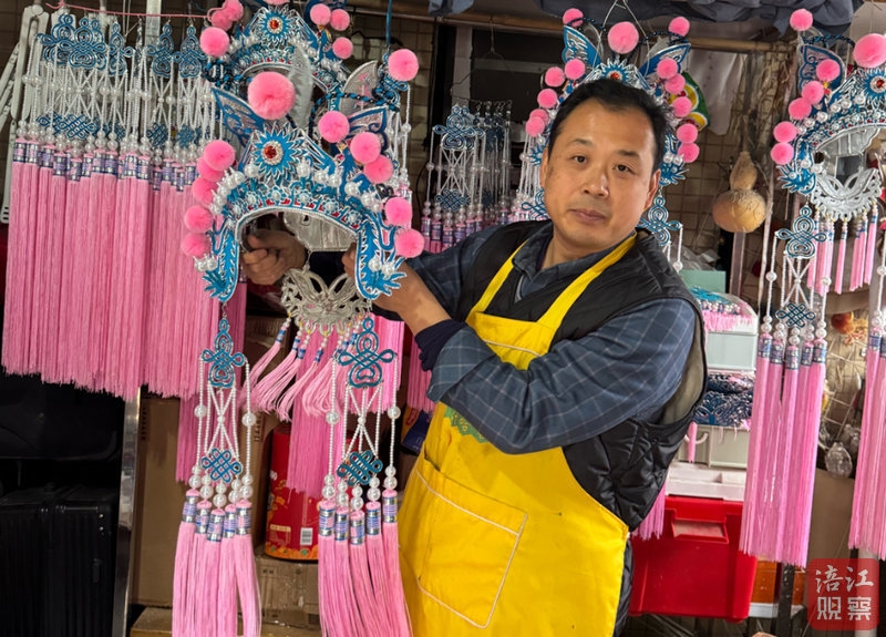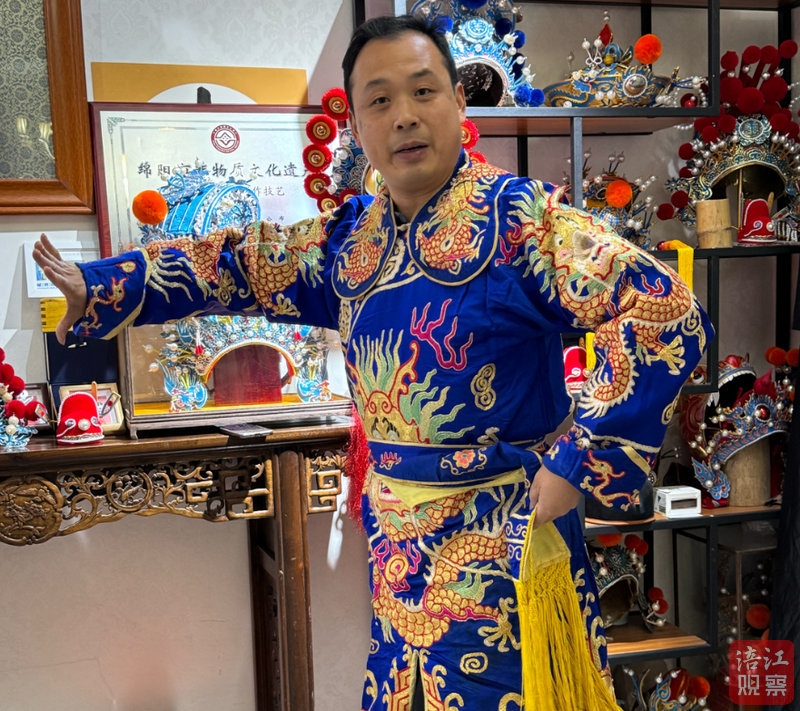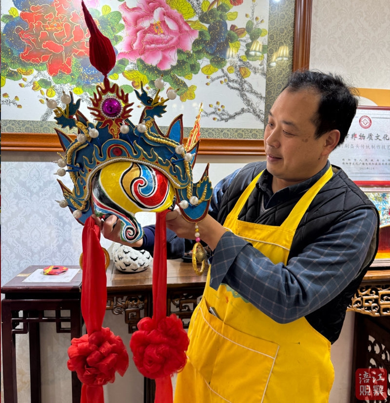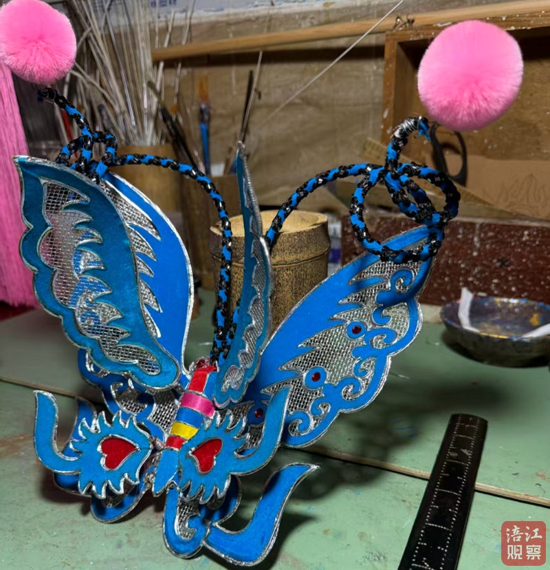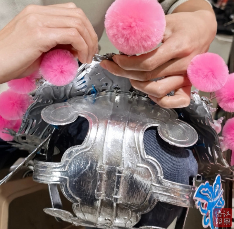 说话间,他拿起一顶已经做好的蝴蝶盔,轻轻戴在头上,左右晃了晃,盔头纹丝不动,流苏随着动作轻轻摆动。“你看,这样舞起来才有味道,既英气,又不压人。”
