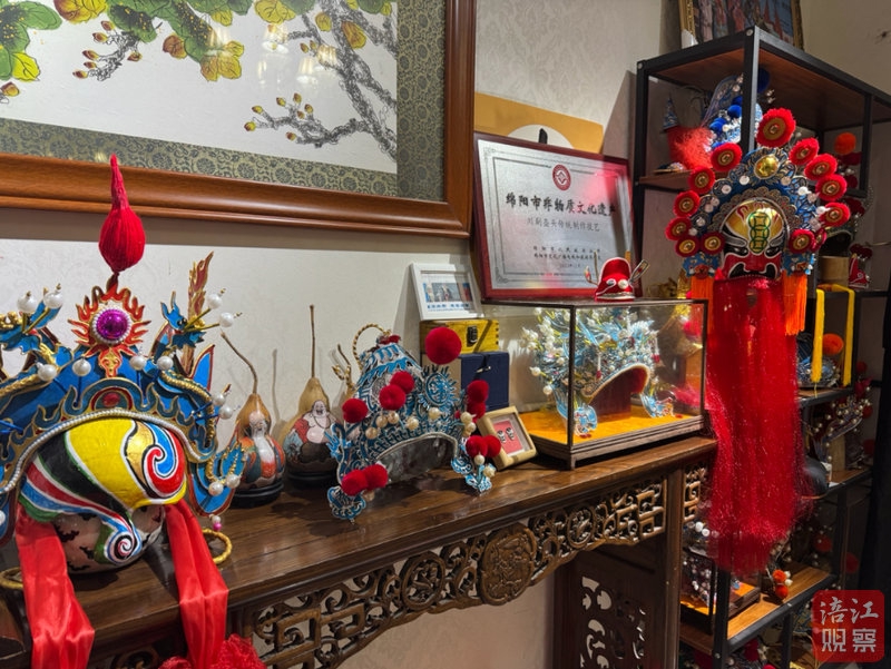 在川剧行当里,盔头俗称“戏帽”,素有“七十二顶半”之说。通过不同盔头与配件的组合,能变化出上千种角色形象。而汪伟主攻的,正是川剧中象征英气与华美的女帅盔、蝴蝶盔等硬帽制作技艺。2024年,川剧盔头传统制作技艺被评为绵阳市市级非物质文化遗产代表性项目,汪伟也成了名副其实的“守”艺人。