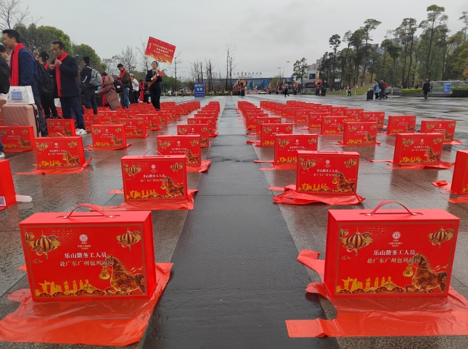 乐山为乘坐专列的农民工精心准备了返岗礼包