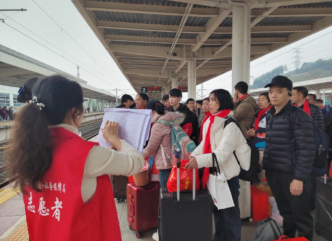 和陈本怀一样感触很深的还有犍为县玉津镇联合村村民毛美霖,她告诉记者,每年返岗的高铁票都很抢手,有一年她足足候补了一个星期才买到,这次能坐上返岗专列,不用自己费心买票,全程还有工作人员服务,让她和一同返岗的丈夫倍感暖心。
