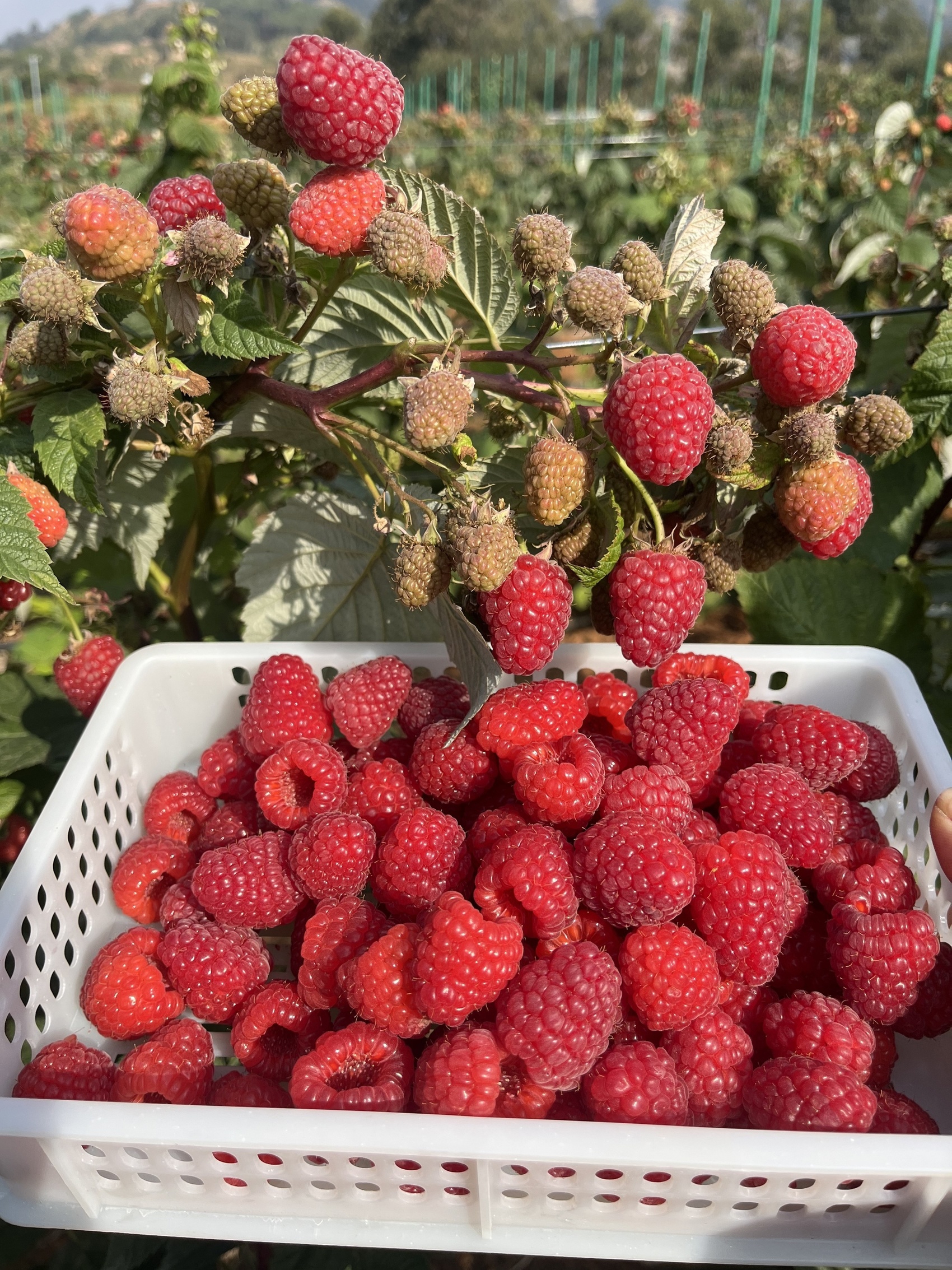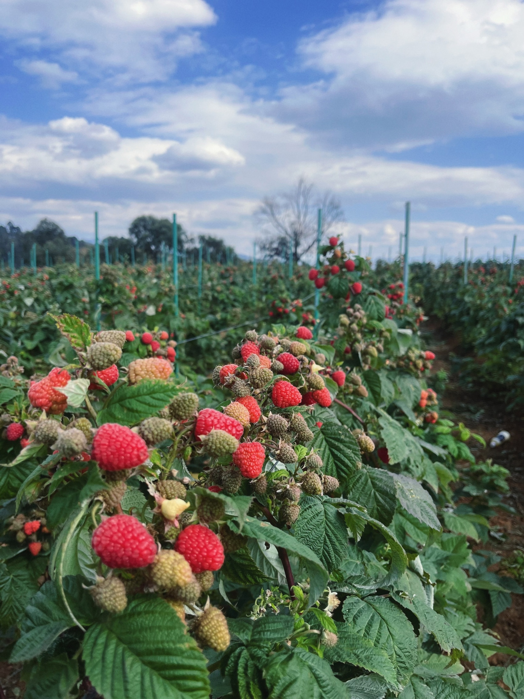 在这样的环境里长大的树莓不挤在大棚里,而是撒开了在全露天环境下自由生长,享受着最纯粹的阳光雨露。结果就是,每一颗都长得饱满圆润,像红宝石一样诱人。