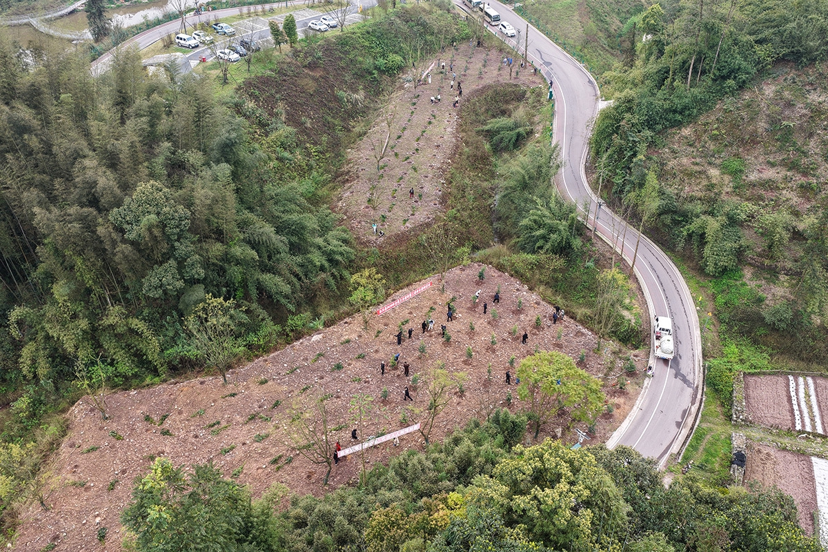 峨眉山市嘉峨茶谷内,120余名干部群众栽种黄柏苗,茶林间作相映成趣。79岁军休干部史生洪更是早早来到现场,忙得满头大汗,这已是他连续第5年参与植树。“这是造福后代的好事,我会一直做下去。”史生洪笑着说。用坚守传递生态担当。