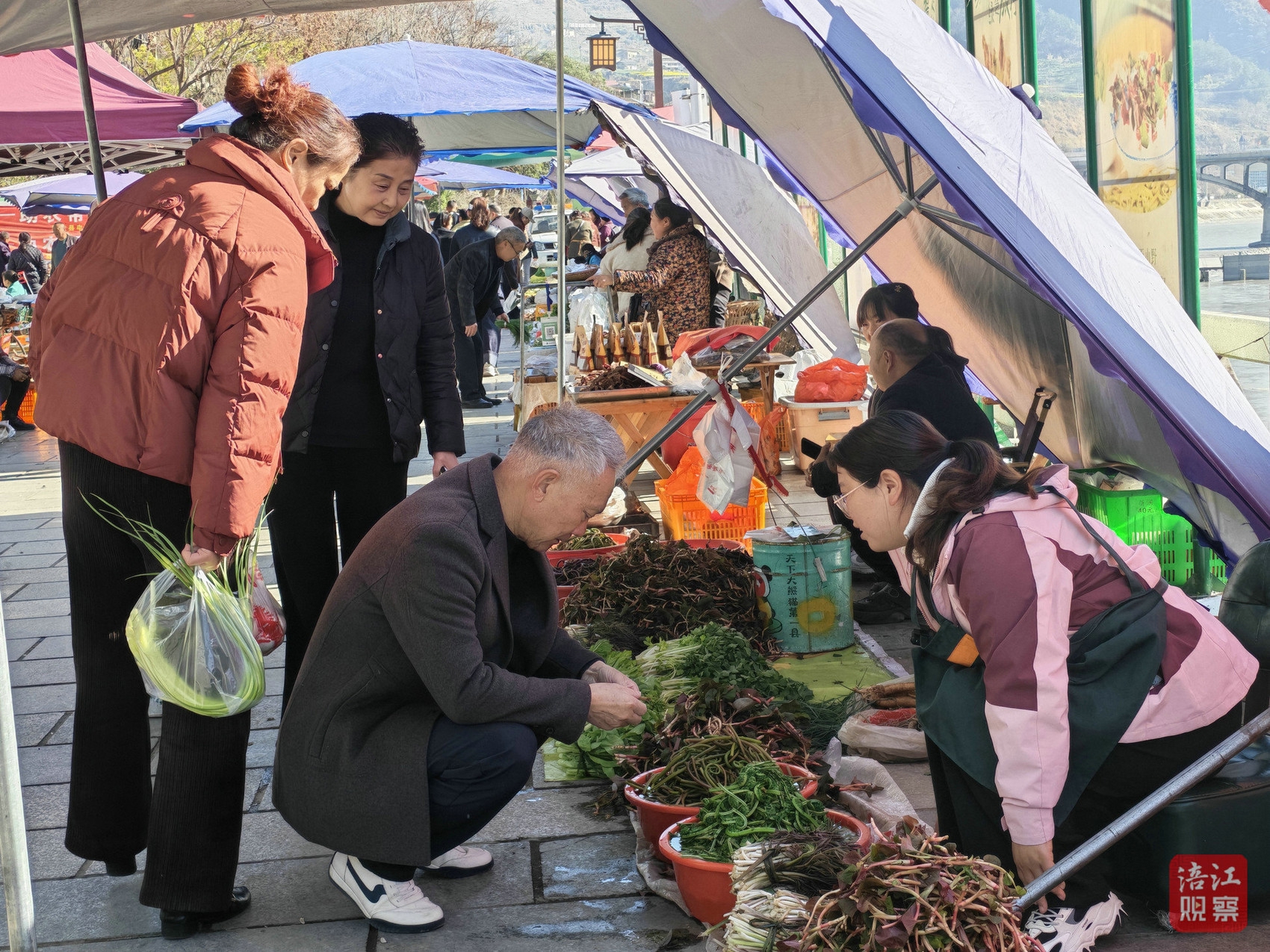 人群中,商贩雷雪玲的吆喝声格外洪亮:“买野菜,买野菜,新鲜的野菜,水蕨子、清明花儿、山根菜都有,纯天然无污染的哦!”她的摊位前,询价声、称重声此起彼伏,不少市民驻足挑选。