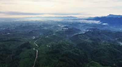 名山以平坝丘陵为主,地势起伏柔和,没有陡峭断崖,既能留住云雾不被打散,又适合依山造田。当地作为世界茶文化发源地、蒙顶山茶核心产区,茶农们顺着等高线开垦茶园,层层茶垄依山延展,刚好契合古画“高远、深远、平远”的立体构图,连皴法肌理都一模一样。