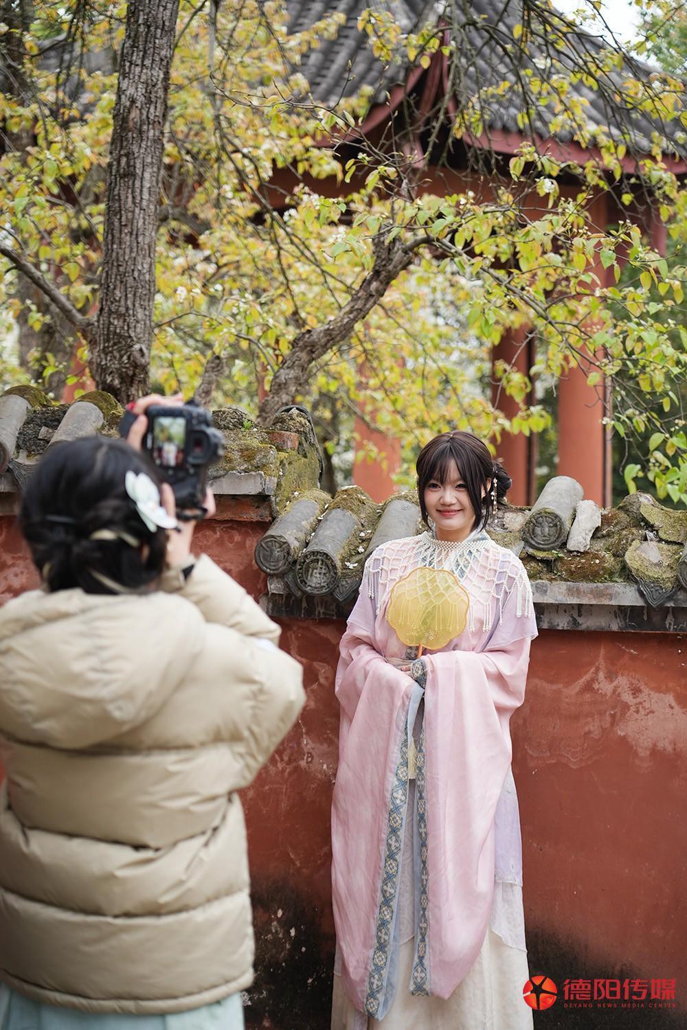 身着古装拍照的人随处可见。德阳传媒记者 雷媛 摄