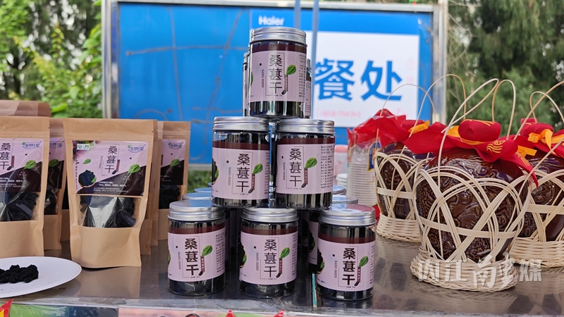 在农产品展销区,记者看到,除了新鲜桑葚,纯手工桑葚膏、桑葚干、桑葚酒、桑叶茶等产品整齐陈列,吸引不少游客驻足购买。“我们不只是卖果子,更在做品牌、做附加值。”黄艳利说。