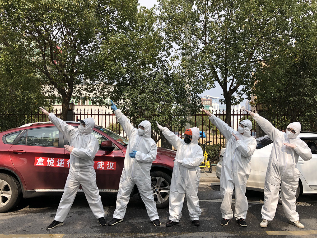 一开始送饭时,也有当地人以为他们可能有“作秀”成分,坚持不了几天。她记得有一天,一位医生在取饭时,对她表示感谢说:“吃了这顿,不知道还有没有下一顿。”她听了以后,心酸又难过,边开车边哭。之后她在车背后玻璃贴着:“疫情不灭,我们不退”,坚持到武汉解封。由于物资紧缺,她和4位伙伴身穿雨衣而不是防护服,时间久了印象深了,她被医生们亲切地在微信群里,叫成了雨衣妹妹,知道的人越来越多。