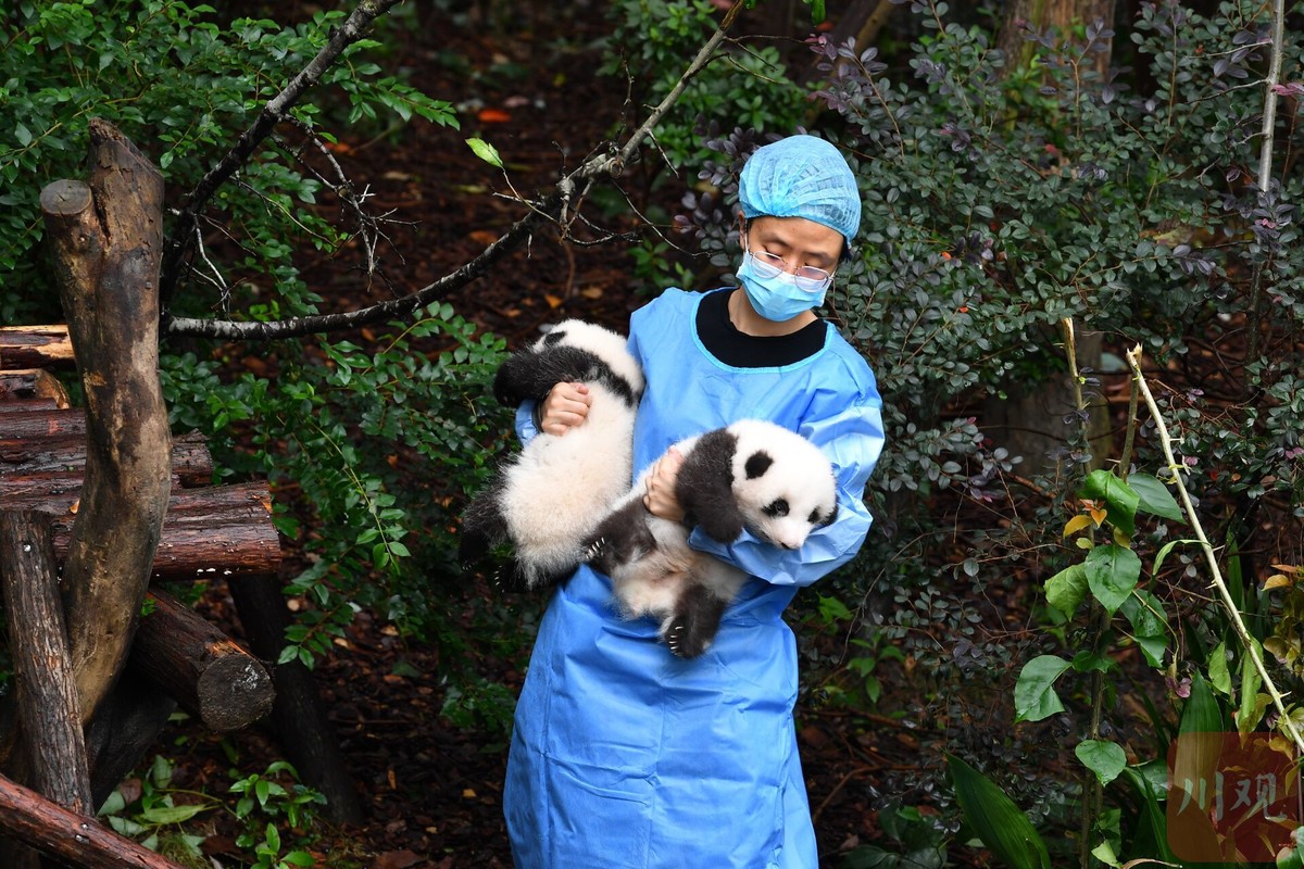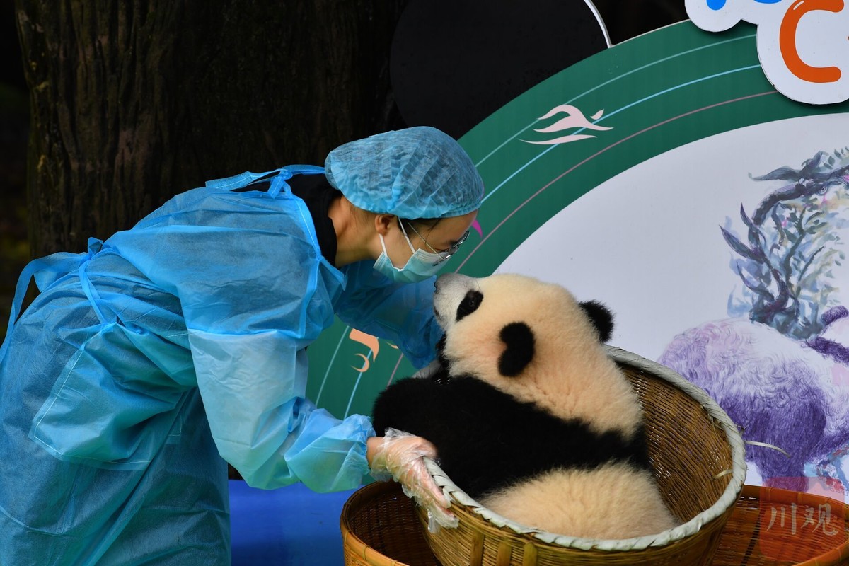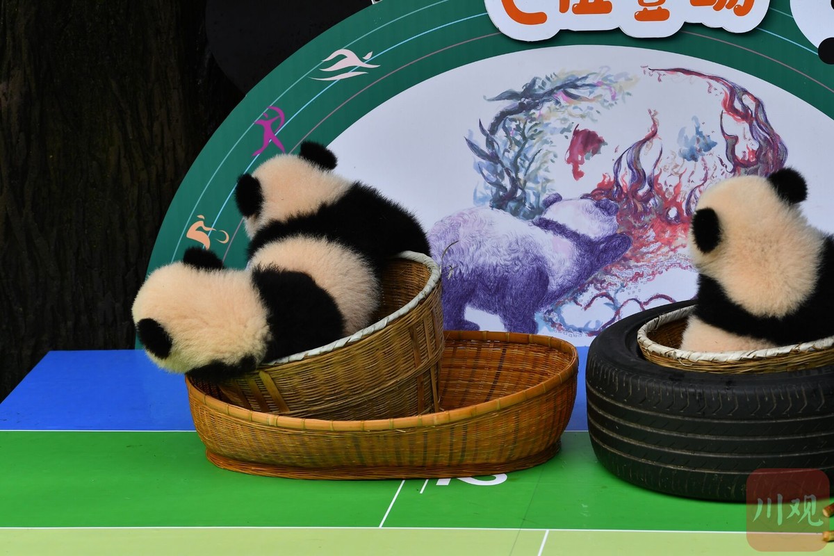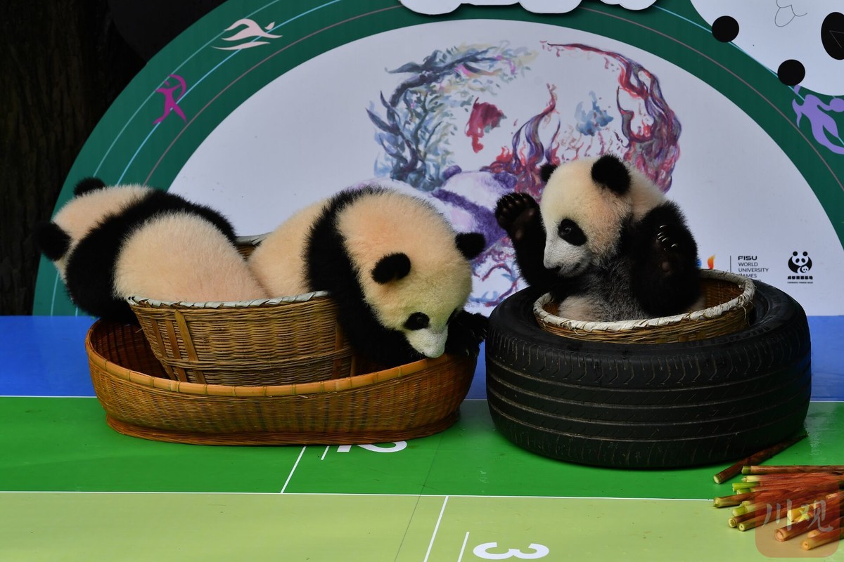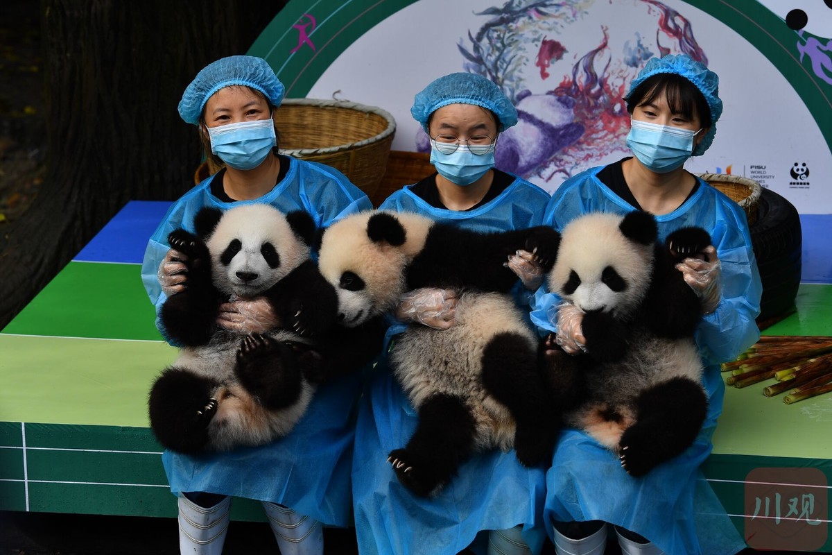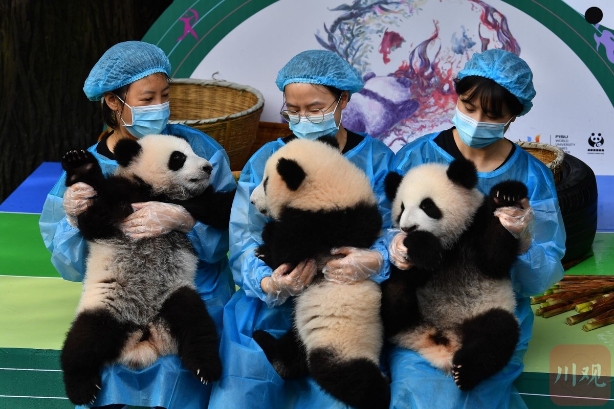 9月29日,在国庆、中秋到来前夕,成都大熊猫繁育研究基地联合成都2021年第31届世界大学生夏季运动会执委会,为2020年部分新生大熊猫宝宝举行了隆重的亮相活动。