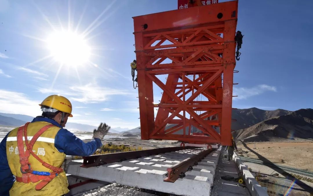 川藏铁路拉林段昌果特大桥进行铺轨作业。(资料图 新华社记者 觉果 摄)