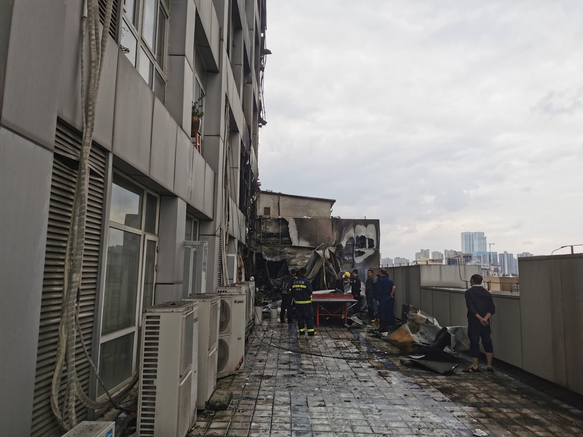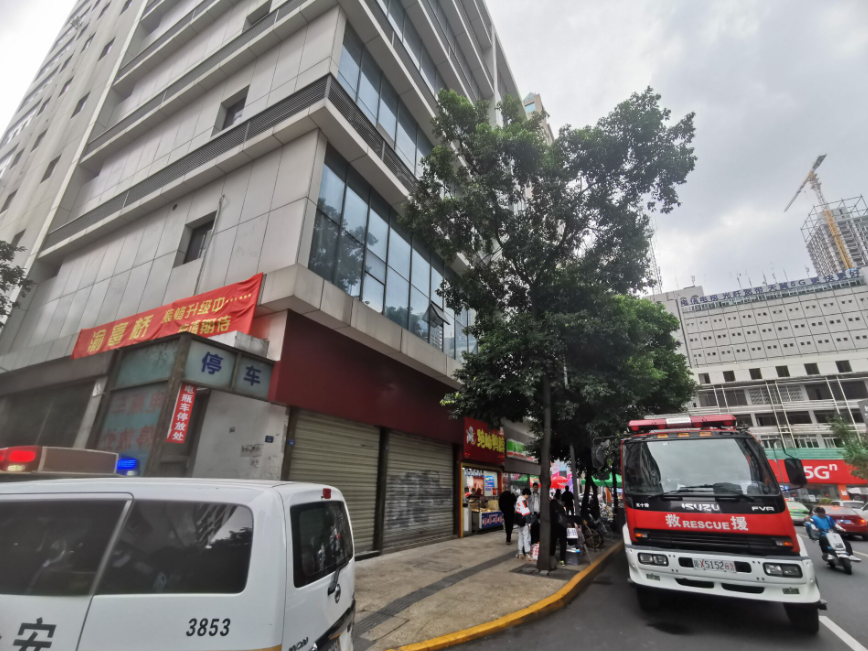 在蜀泰商厦做保洁的陈女士是第一目击者,她当时正在7楼蓉易购网络科技公司外阳台处做保洁,发现阳台北端一个人为搭建的货棚内有烟往外冒,她赶紧通知正在科技公司值班的人员报警。“大约1点钟左右,我看见在冒烟,火那个时候还没起来,我赶紧找人报警,灭火。”陈女士说。