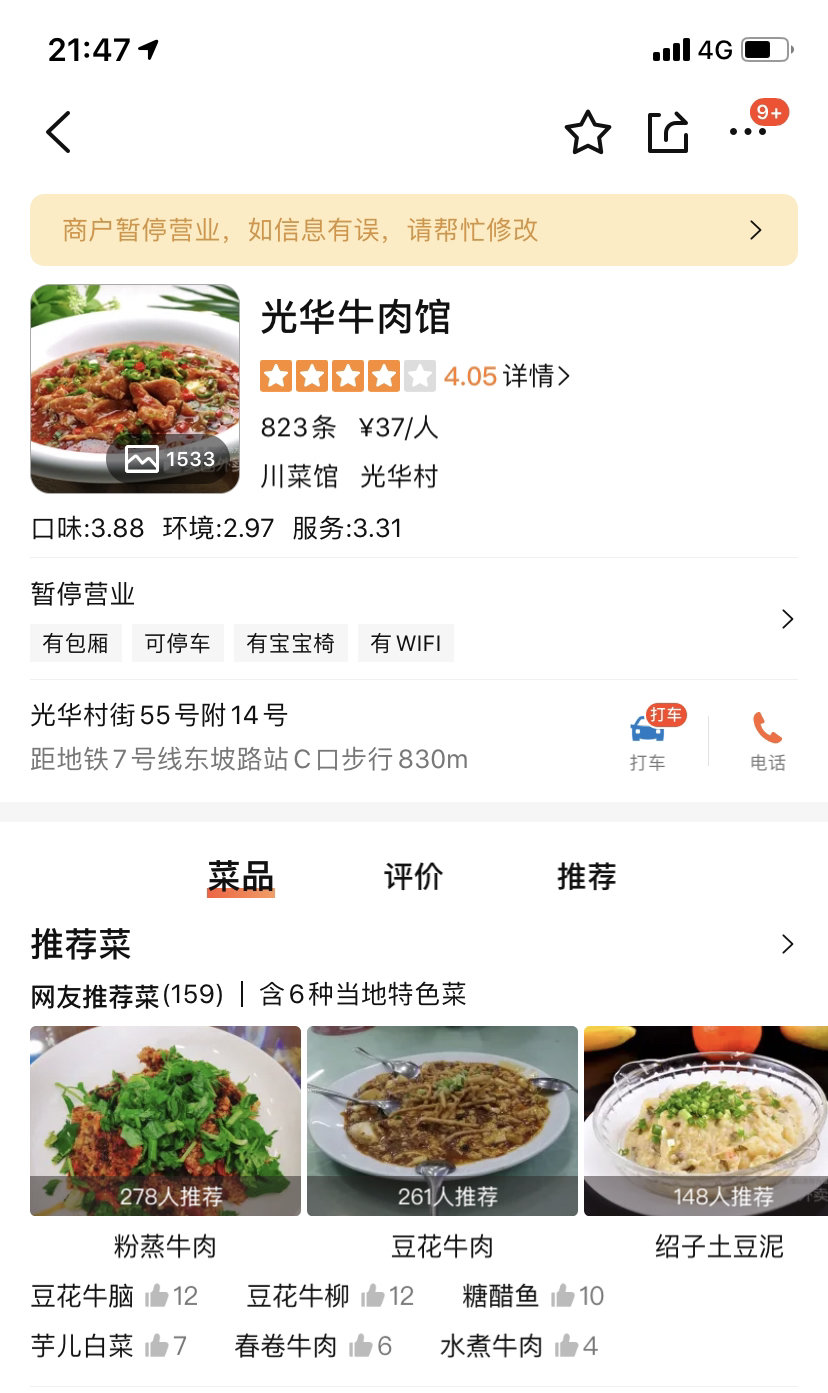 谈及暂停营业的原因,光华牛肉馆老板表示,主要是因为年龄大了、疫情影响以及房租到期等原因。