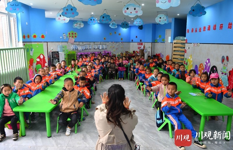 今年6月,在金阳县最大的易地扶贫搬迁集中安置点外的幼教点正式投入使用,目前社区内400多名学龄前儿童都已经入学。
