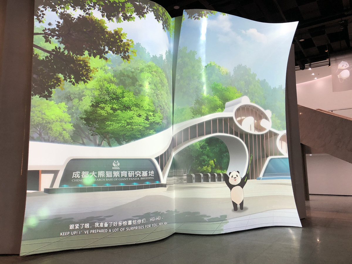 走进博物馆,首先印入眼帘的就是一本书籍形状的巨型幕墙,其上播放着视觉效果非常赞的大熊猫简史动画片。