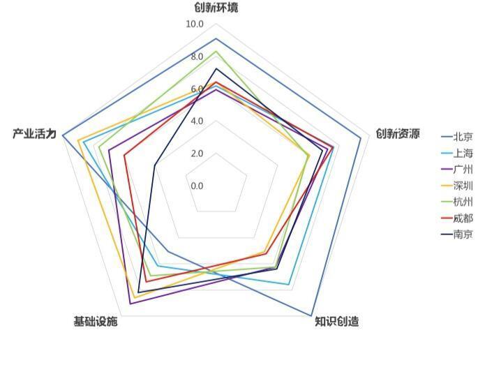 → 从创新成效来看成都在创新环境、创新资源、知识创造、基础设施、产业活力等五个维度,均居全国前十强。
