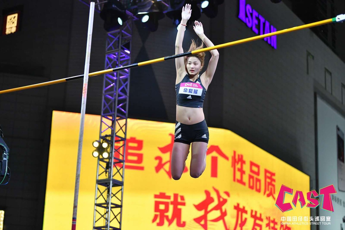 在热闹繁华的春熙路红星路步行街看撑杆跳高是怎样一种感受?10月29日,中国田径街头巡回赛在四川成都迎来2020赛季的尾声,一场高燃的男女子撑竿跳高比赛在百年金街春熙路备受瞩目,为观众成功演绎了街头赛本赛季的完结篇。经过一番激烈角逐,2020年全国田径锦标赛冠军姚捷以5米50的成绩获得男子组冠军,女子组冠军被00后小将牛春格夺得,成绩为4米30。