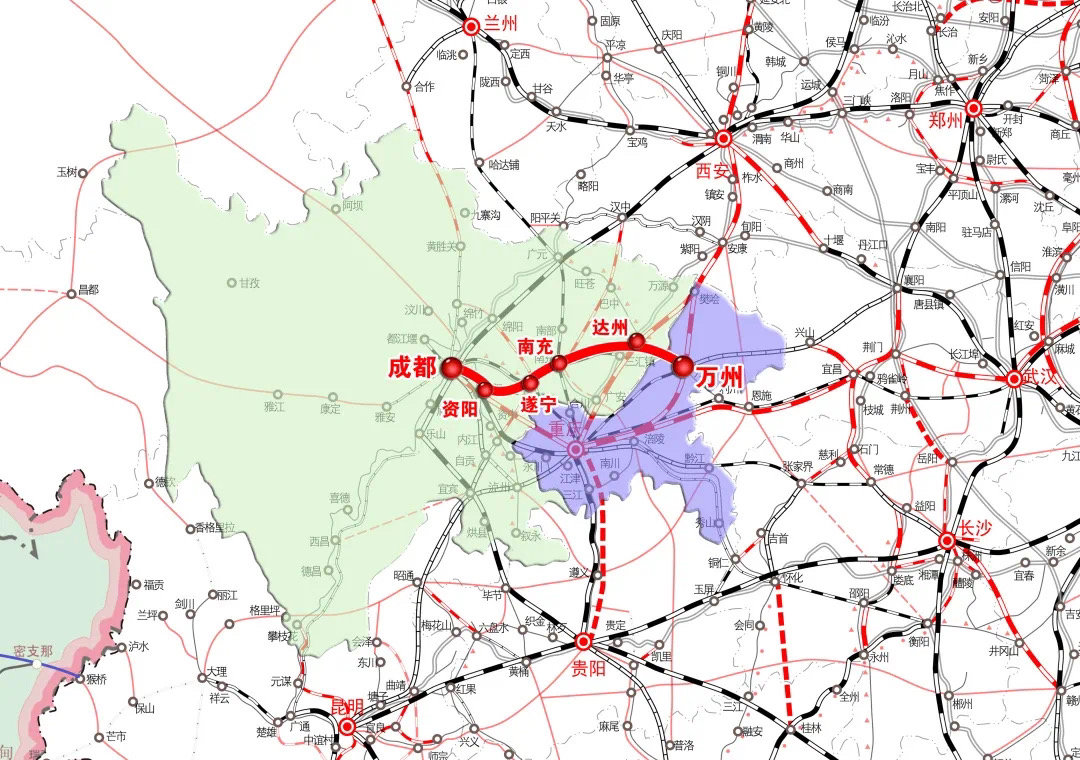 在与路网的衔接上,成达万高铁在万州与郑万高铁衔接,形成了成都到“中原之地”郑州的高速通道;在达州和西渝高铁并站,形成川东北地区出川北上的高速通道;在遂宁与既有遂宁站并站设高速站,并新建联络线与成隧铁路相连,实现与沪汉蓉通道的联系。“这些铁路全部建成后,由成都出川的大通道将增加多条,也为成渝两地城际铁路出行增加了便捷通道。”