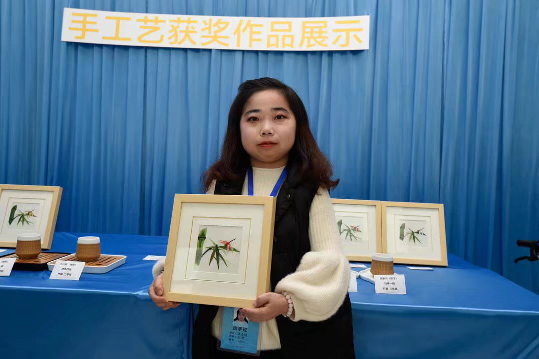 据了解,从2019年5月至今,贾春梅在郫都区犀和社区“和·绣坊”任培训教师,帮助培训残疾人120余人。