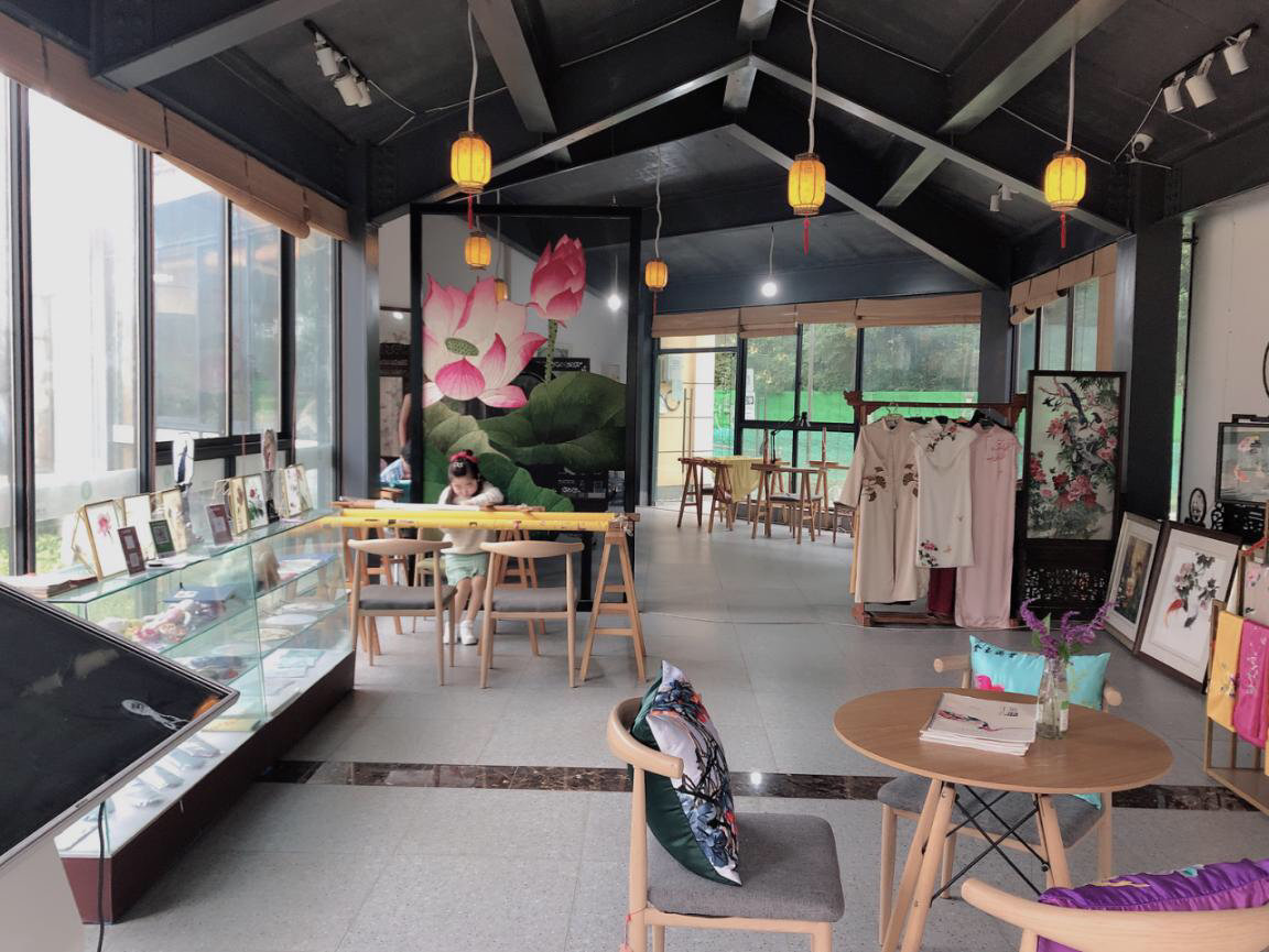 “和·绣坊”拥有200平方米展厅, 300平方米培训室,能一次容纳培训残疾学员200余名。在满足残疾人参加蜀绣培训的同时,还能促进残疾朋友走出家门,融入社会,实现家门口就业。