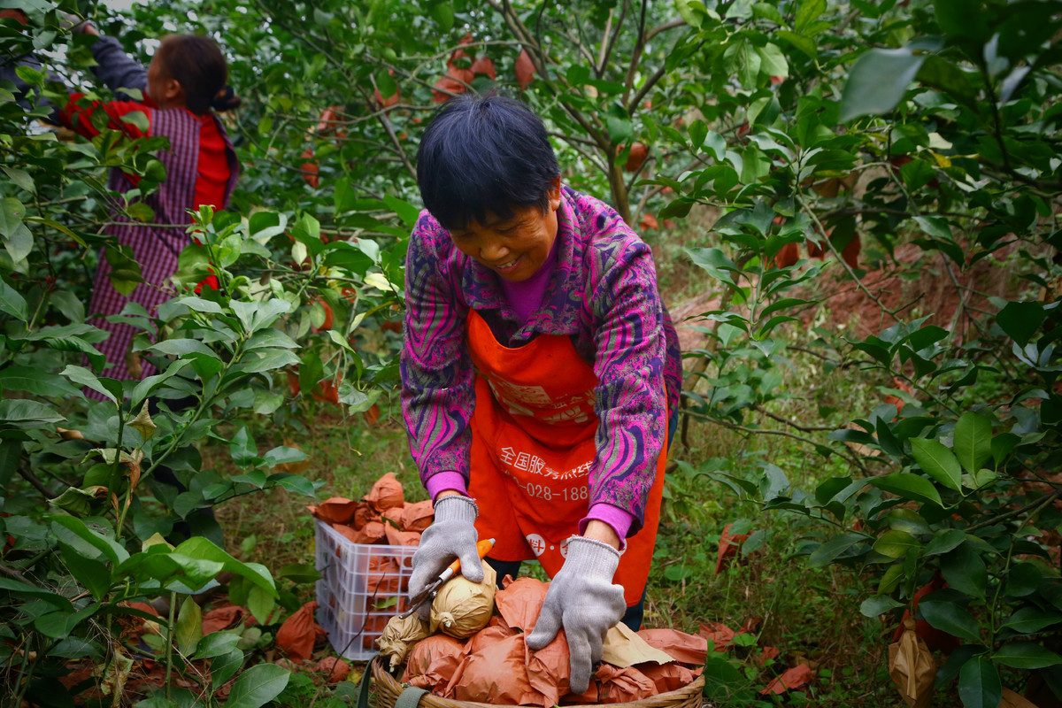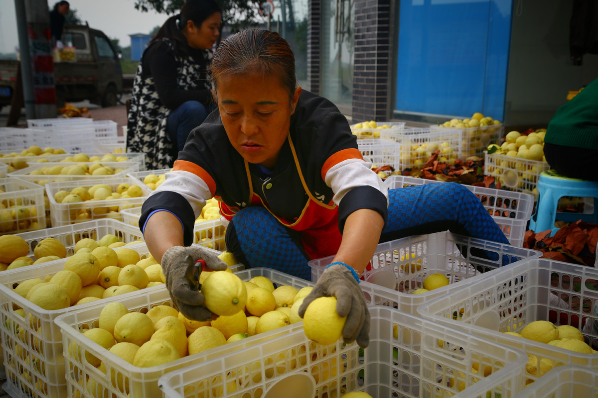 11月12日,记者走进乐山市沙湾区嘉农镇盐溪口村,就被600多亩的柠檬种植基地吸引了过去。绿油油、金灿灿的青、黄柠檬压弯了枝头,柠檬的清香扑鼻而来。一边,果农们正动作熟练地采摘、挑选、装箱,将黄灿灿的“金果子”包装好运输出去。尽管还未全面上市,盐溪口村柠檬基地早早就接到了预购订单。