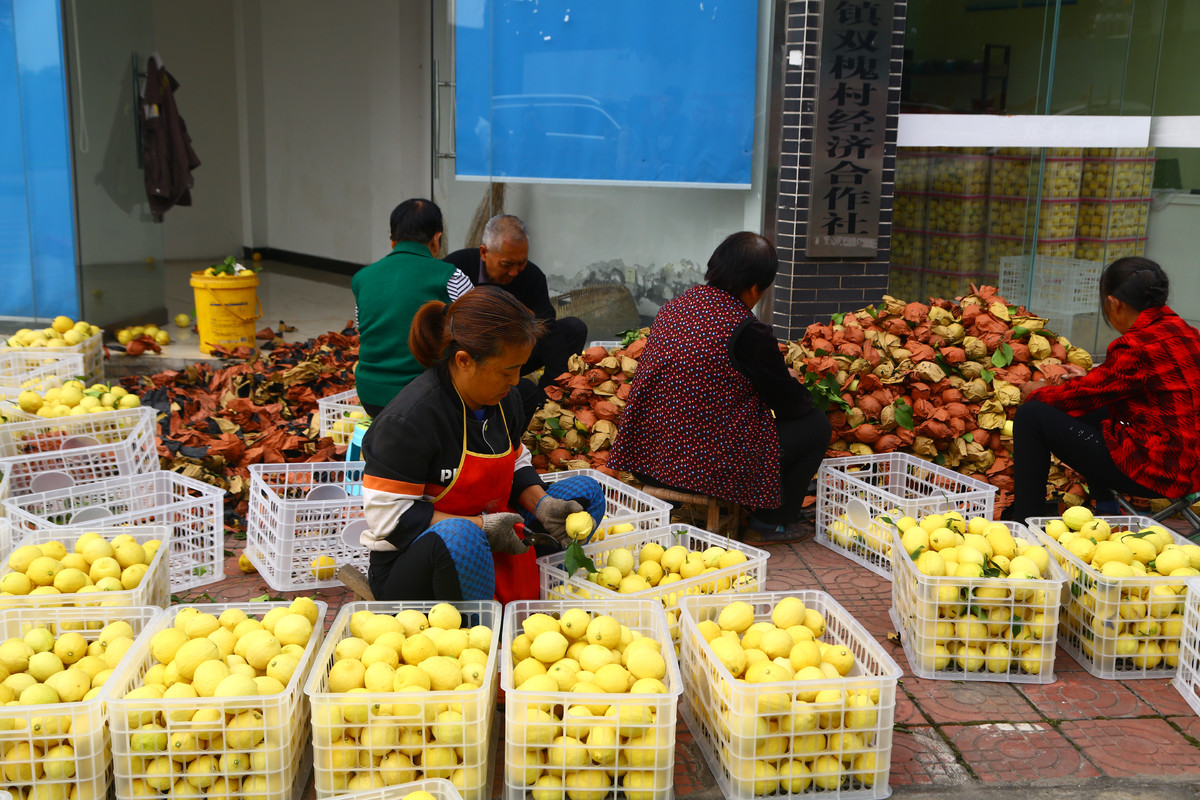 以产业成规模为基础,2018年起,徐志雄先后去到安岳、温州、厦门等地,拓展销售渠道。2019年,盐溪口村开始和电商公司合作,通过直播的方式,主播带货,掀起了一股采购柠檬热,盐溪口柠檬逐渐打出名气。今年,几家农资公司主动找到柠檬基地,用打包收购的方式,提前预定了基地里的柠檬。