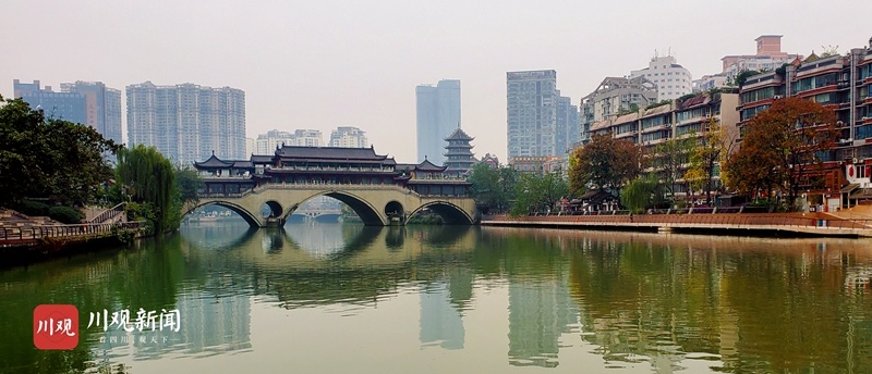 东门大桥地铁站旁,是成都赏秋胜地之一的合江亭。环绕内城的府河、南河在此交汇,碧波荡漾,层林尽染,白鹭齐飞,秋色秀美。