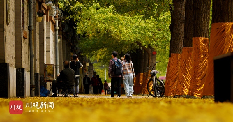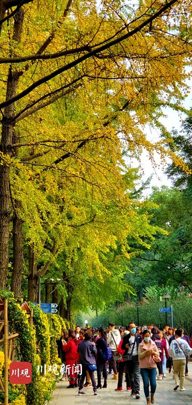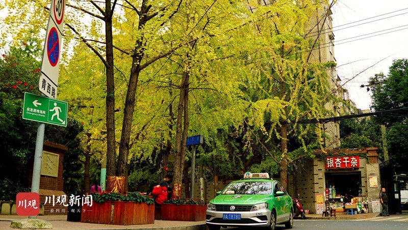 距天府广场仅四站之隔的“白果林站”,就算没去过这里,相信也能猜出这地方跟银杏有关系吧。有人说,以前这里因为种了大量的银杏,所以得名白果森林。从地铁站 C口出来,沿著清西路走到底,便可到达成都最美的银杏观赏区之一的银杏路,街道并不算宽敞,但独有一番秋韵。