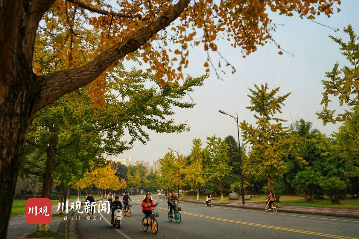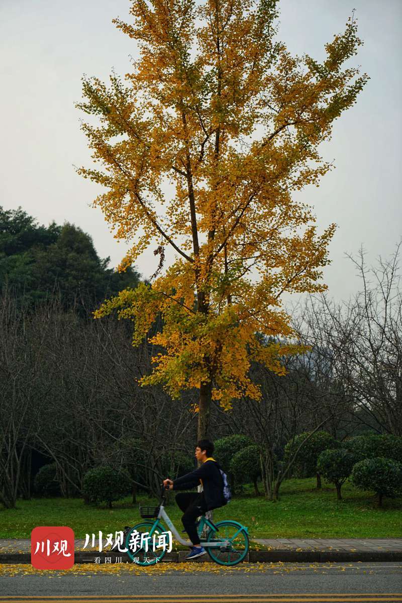 江安河旁边的这条银杏大道,当银杏树叶铺满时是川大江安校区最有特色的一条路。银杏为这个极具文化底蕴的校园增添了一抹淡淡的、令人赏心悦目的黄,川大学子们上下课途径这里,美丽的银杏树引得不少同学停下匆忙的脚步,与初冬来个合照。