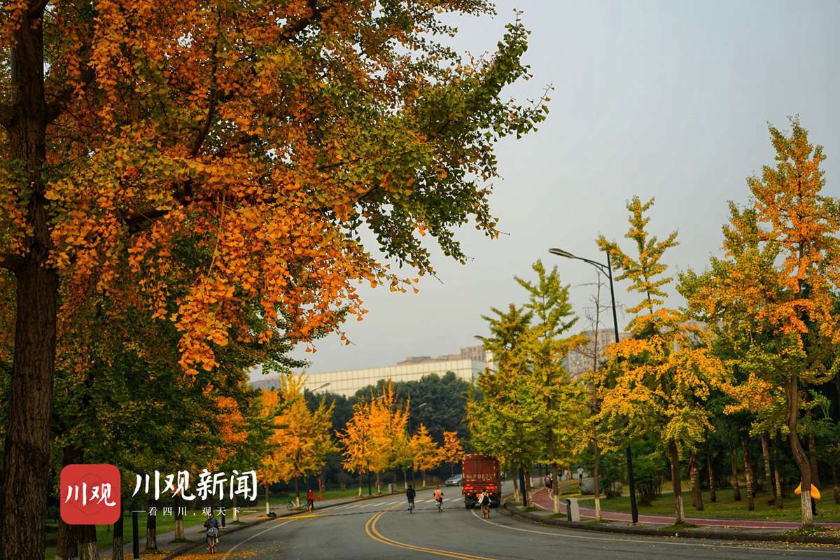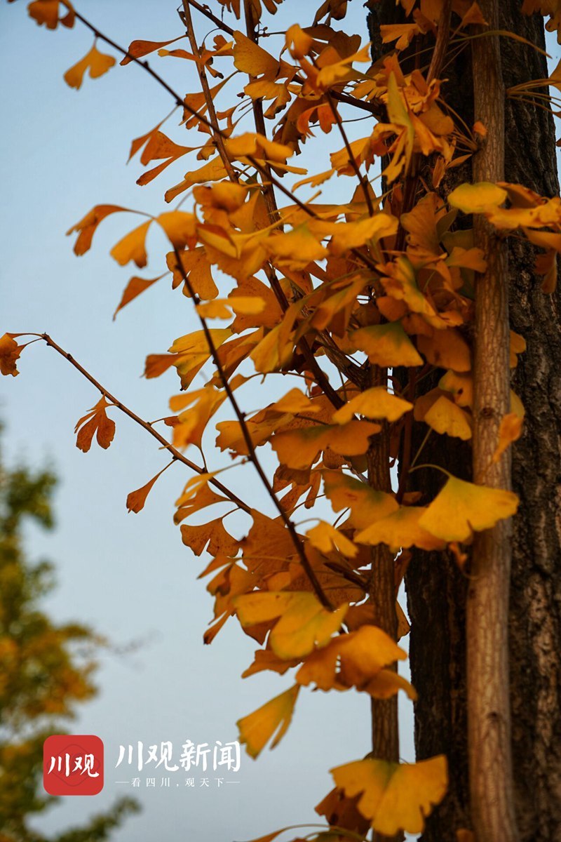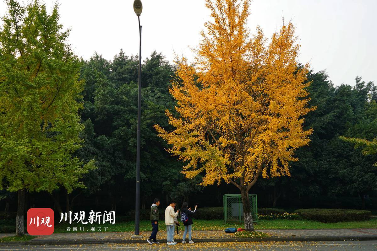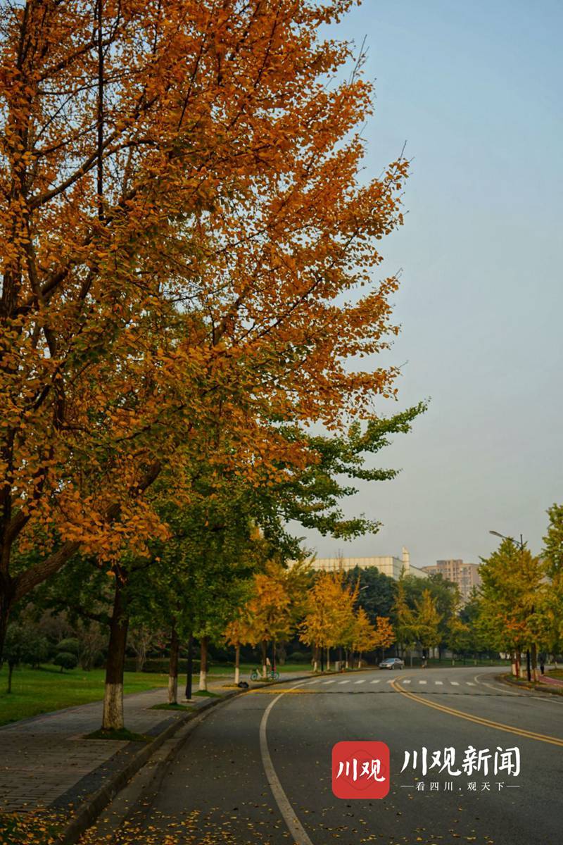 11月16日,四川大学江安校区银杏大道开始呈现出一片金灿灿的景象。银杏树“肩靠肩““面对面”整齐地立在大道两边。走近树下仰望,枝条上树叶层层叠叠,十分密实。阳光透过枝叶,叶片晶莹剔透,熠熠生辉,金光灿烂。
