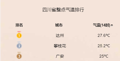 而11月17日14时,达州曾以27.6℃领跑四川省整点气温排行榜。