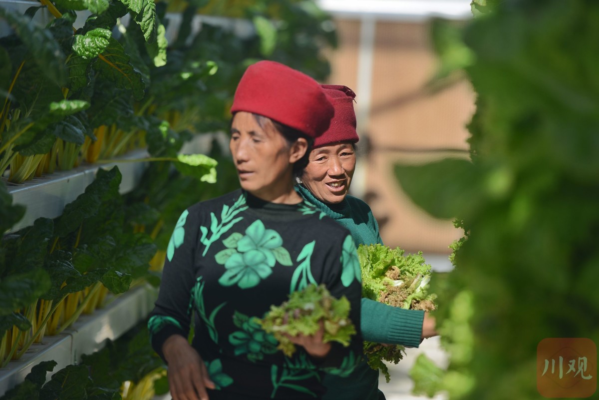红的、绿的、黄的色彩缤纷,像树、像桥、又似墙,仿佛进入魔幻世界一般,各种无土栽培的蔬菜茂盛地生长在造型不同的生长架上,焕发着勃勃生机。上午10时许,在涪昭产业园里打工彝族妇女古莫,像往常一样熟练的在园区里忙碌,面对记者的采访,她脱口而出:现在的生活“瓦吉瓦”(彝语:太好了)习总书记“卡沙沙”(彝语:感谢)!