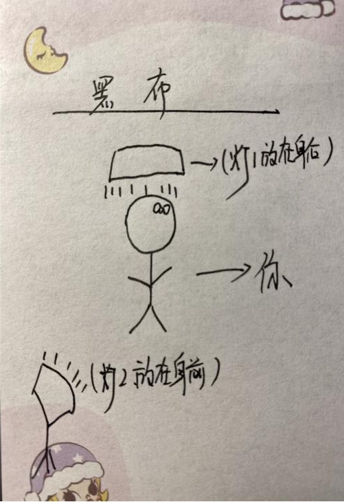 最好准备至少两盏补光灯(可以是led灯、摄影灯、小夜灯、台灯等等,功率够大就行),一盏放在身后的逆光方向,用以照亮头发,让发丝变得金光闪闪;另一盏则放在前面,用以给脸部补光,否则在光线不强的情况下,脸黄黄的黑黑的,画面会很不好看。