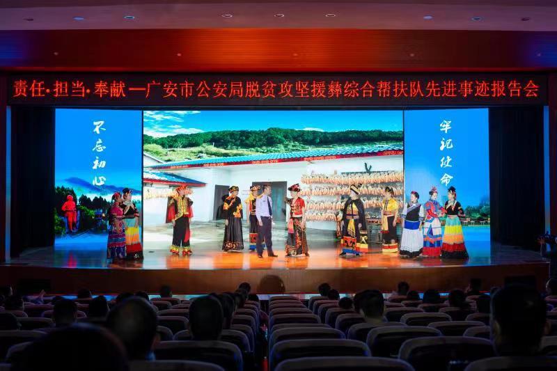 报告会现场播放了援彝警队工作纪实专题片及采访工作队赴凉采访花絮,表演了配乐诗朗诵《致敬 在脱贫攻坚战役中的援彝警队》、情景剧《乌依乡的春天》、歌伴舞《相信》等文艺节目。