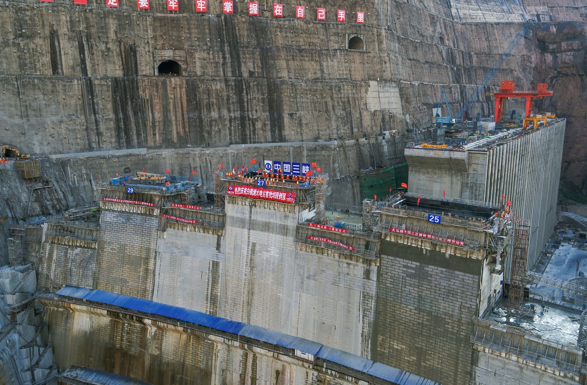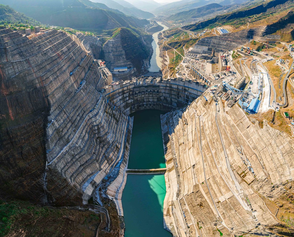 11月26日,白鹤滩水电站大坝首批坝段浇筑到顶,为这一世界在建最大水电工程2021年7月首批机组投产发电奠定坚实基础,也标志着我国300米级混凝土双曲特高拱坝建造技术实现世界引领。