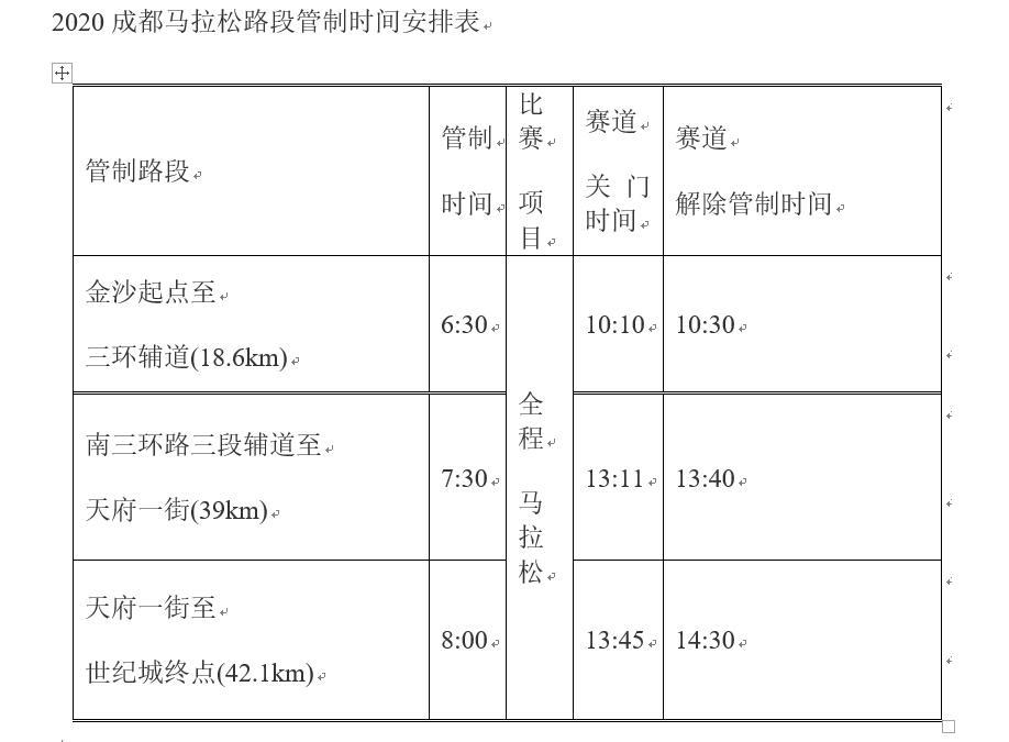 为保障2020成都国际马拉松赛事的顺利进行,组委会将会在以下时段占用部分社会道路进行赛事所需设施的搭建工作: