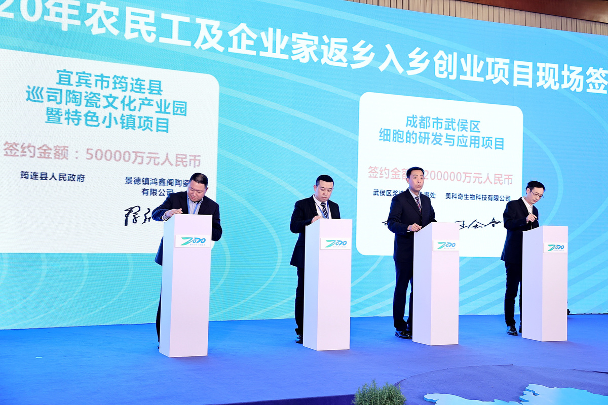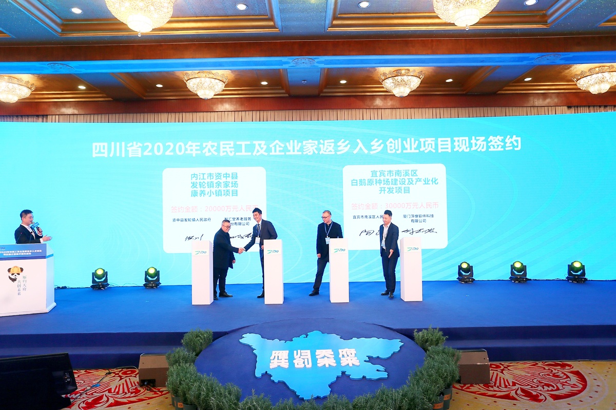 11月26日,以“雁归天府 共创未来”为主题的四川省2020年农民工及企业家返乡入乡创业项目推介暨集中签约活动在成都举行。13个返乡入乡创业项目成功签约,签约总金额达36.49亿元。