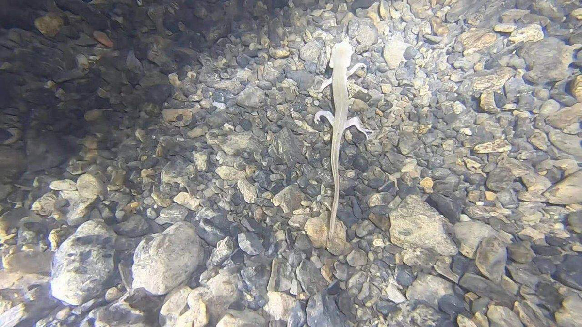 “叠洞河内,有发现像中国小鲵的白化品种两栖动物以及纯黑色的蝙蝠,很有可能是新生物,有极高的科研价值。两栖动物长约20cm,有4足,身体乳白色,爬行速度较快;纯黑蝙蝠冬眠状态下身体高度大约15cm左右,头部像小狗,翅膀比普通蝙蝠长很多。”王林有6年洞穴科考探险,对上述生物,他表示还是第一次见到。除此之外,还发现了大量的透明蟹类、蛙类等。