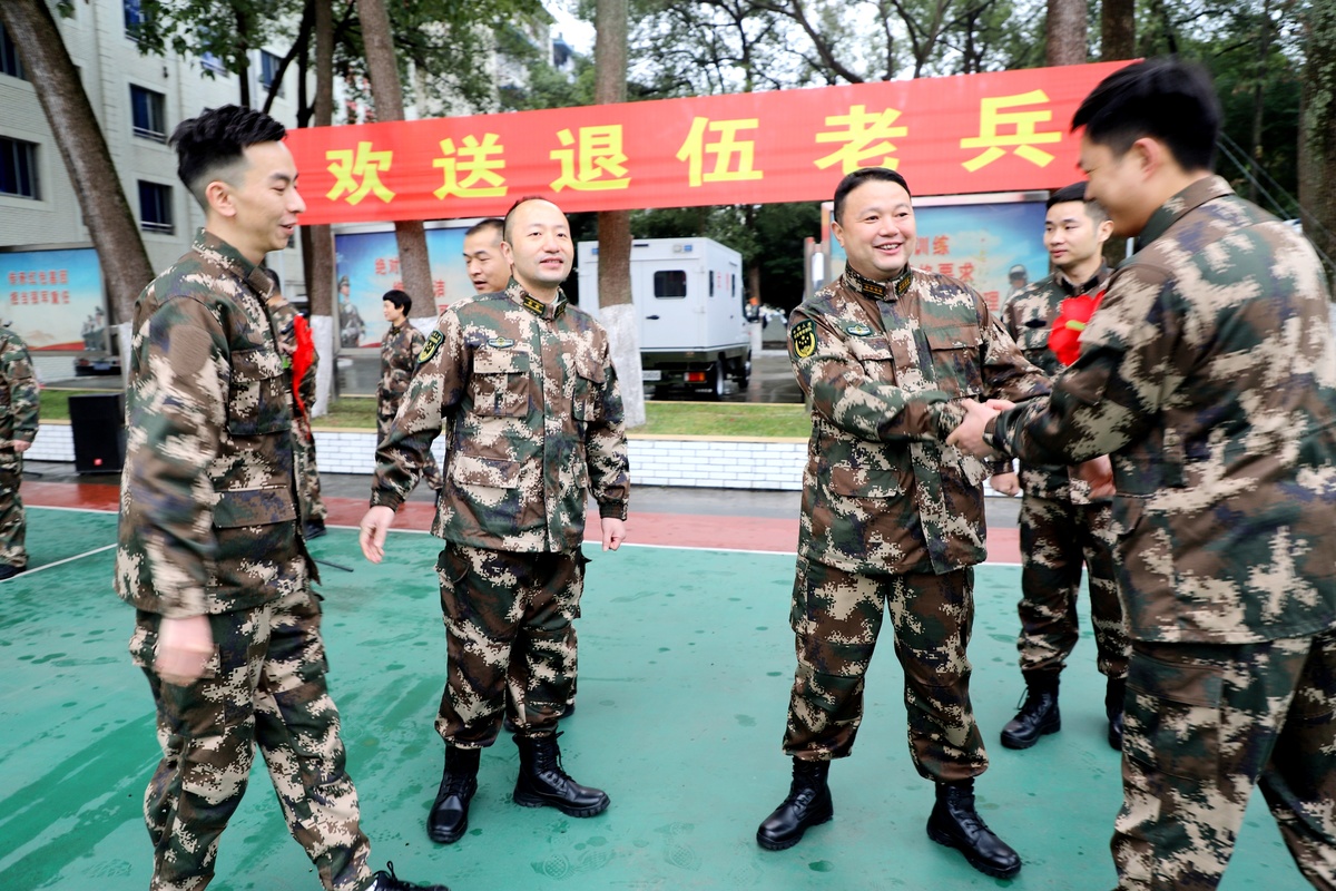 赵志勇介绍,今年退役士兵全都是在部队服役8年以上的老兵,是部队的老骨干、兵教头、顶梁柱。多年来,他们奋斗在保卫驻地人民安居乐业的一线,抗震救灾、抗洪抢险、维稳处突……他们把自己最好的年华献给了驻地、献给了军营。“举行退役仪式,既是为了表彰他们服役多年来为部队做出的杰出贡献,也是为将老兵的优良传统发扬下去。”