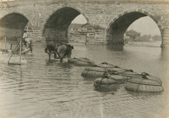 成都万里桥下浣纱之百姓,旁边是鱼篓 (成都图书馆供图)
