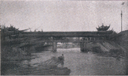 如今在《老成都影像馆数据库》里,人们可以看见这座已经消失的老桥身影。桥上有木栏画廊覆盖,两端有亭,是一座典型的廊桥。最有特色的是在桥中段的一侧还修有一个小庙,桥的两端还有寺庙,桥北有东岳庙,桥南有水神寺。