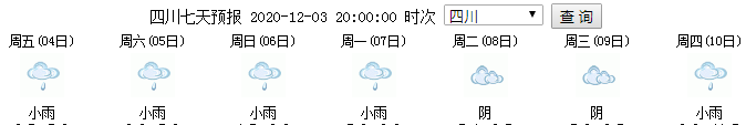 四川省气象台预计:今天(12月3日)晚上到明天白天,广安、达州2市阴天转多云,盆地其余各市阴天有小雨;甘孜州南部阴天间多云有阵雪(雨),局部地方有中雪,川西高原其余地方多云;攀西地区阴天间多云有阵雨(雪),其中攀西地区南部局部有中雨。