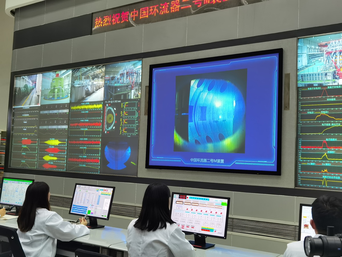 12月4日下午2点,成都双流,中核集团核工业西南物理研究院(以下简称“核西物院”)的中国换流器指挥控制中心大屏上,一道电光闪过,稍作间歇又是一道,频繁闪烁……由该院自主设计建造的新一代先进磁约束核聚变实验研究装置中国环流器二M(HL-2M)装置成功放电,标志着我国新一代先进磁约束核聚变实验研究装置建成并正式投入运行。