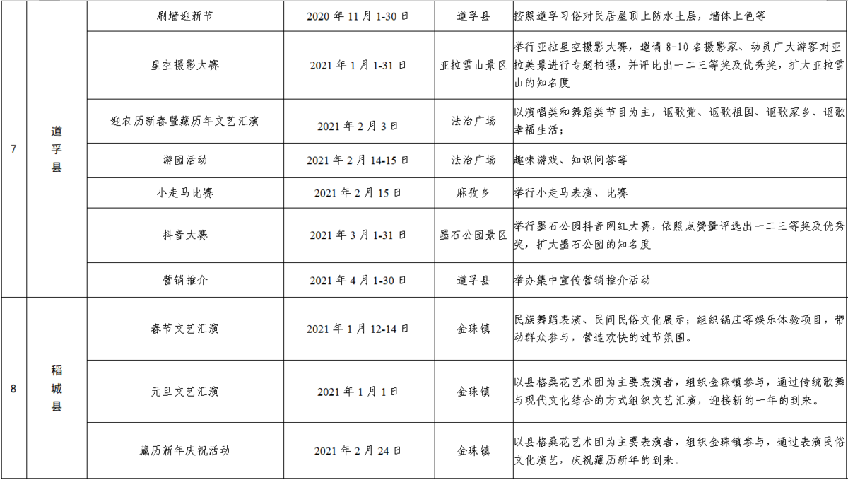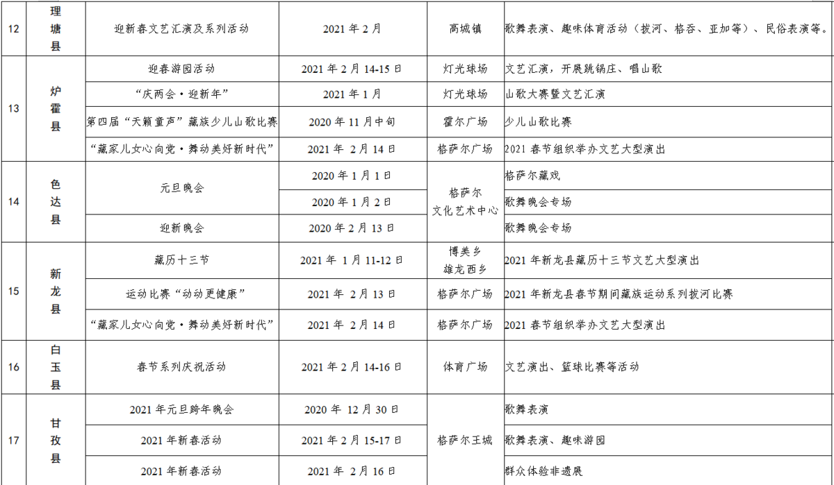 不仅如此,甘孜州各县(市)还将组织开展丰富多彩的元旦、春节、藏历新年民俗活动。