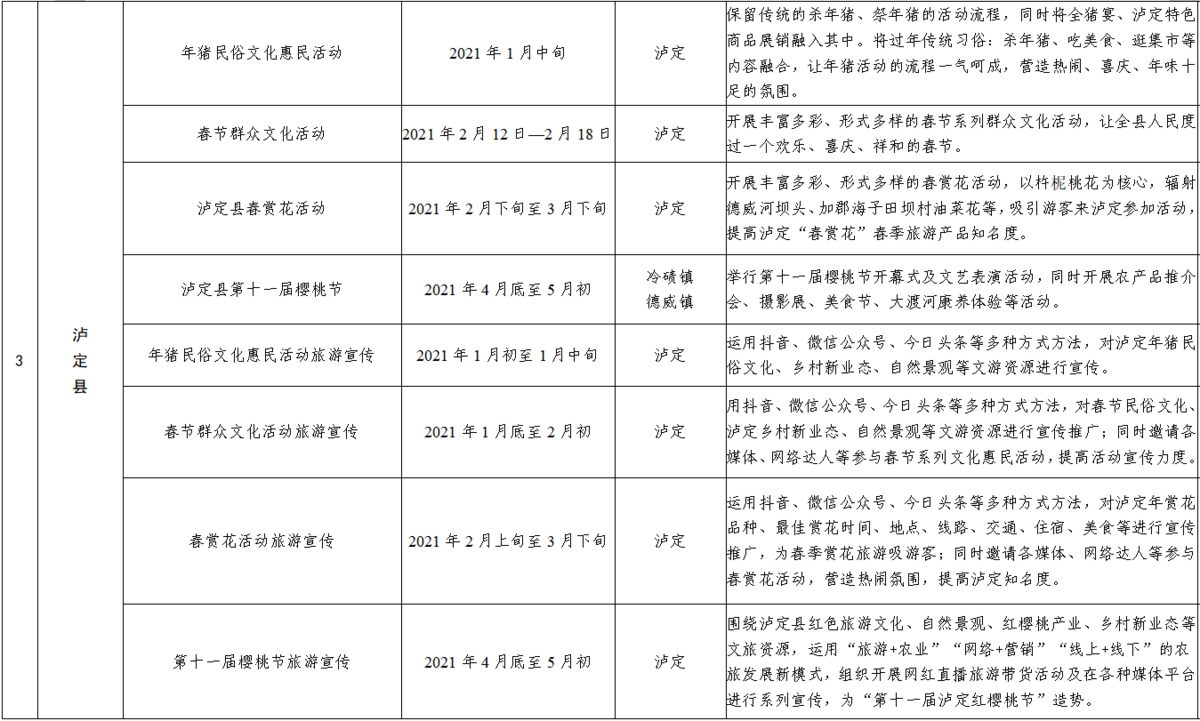 活动内容:2项主体活动,即“大贡嘎”文化旅游发展联盟成立大会、第三届冰川温泉旅游节开幕式;8项配套活动,即新闻发布会、冰雪天使选拔大赛、温泉康养发展论坛、环贡嘎冰雪温泉阳光采风活动、第二届海螺沟美食周、云文创设计大赛、健身操大赛、诗歌书画展等。