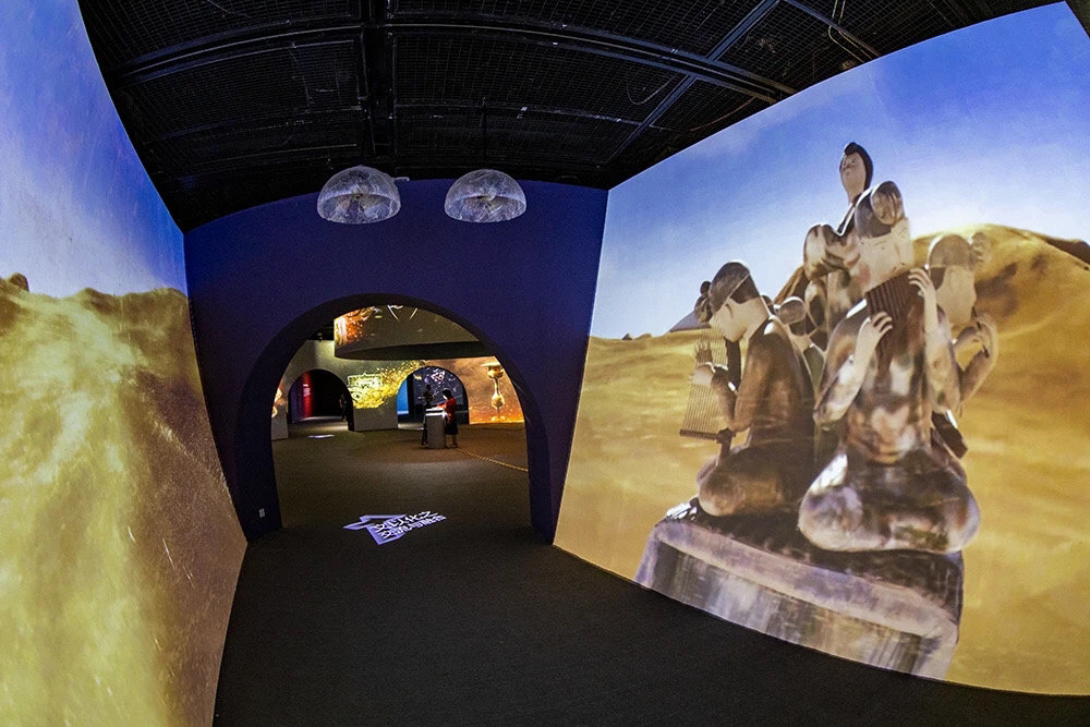 此外,“翰墨文心:风骨与气韵”通过沉浸体验数字化构建了“曲水流觞”意境;在“文以化之:交流与融合”可以感受丝绸之路上的文化融合;动态呈现王羲之《兰亭集序》,展现文人气韵。